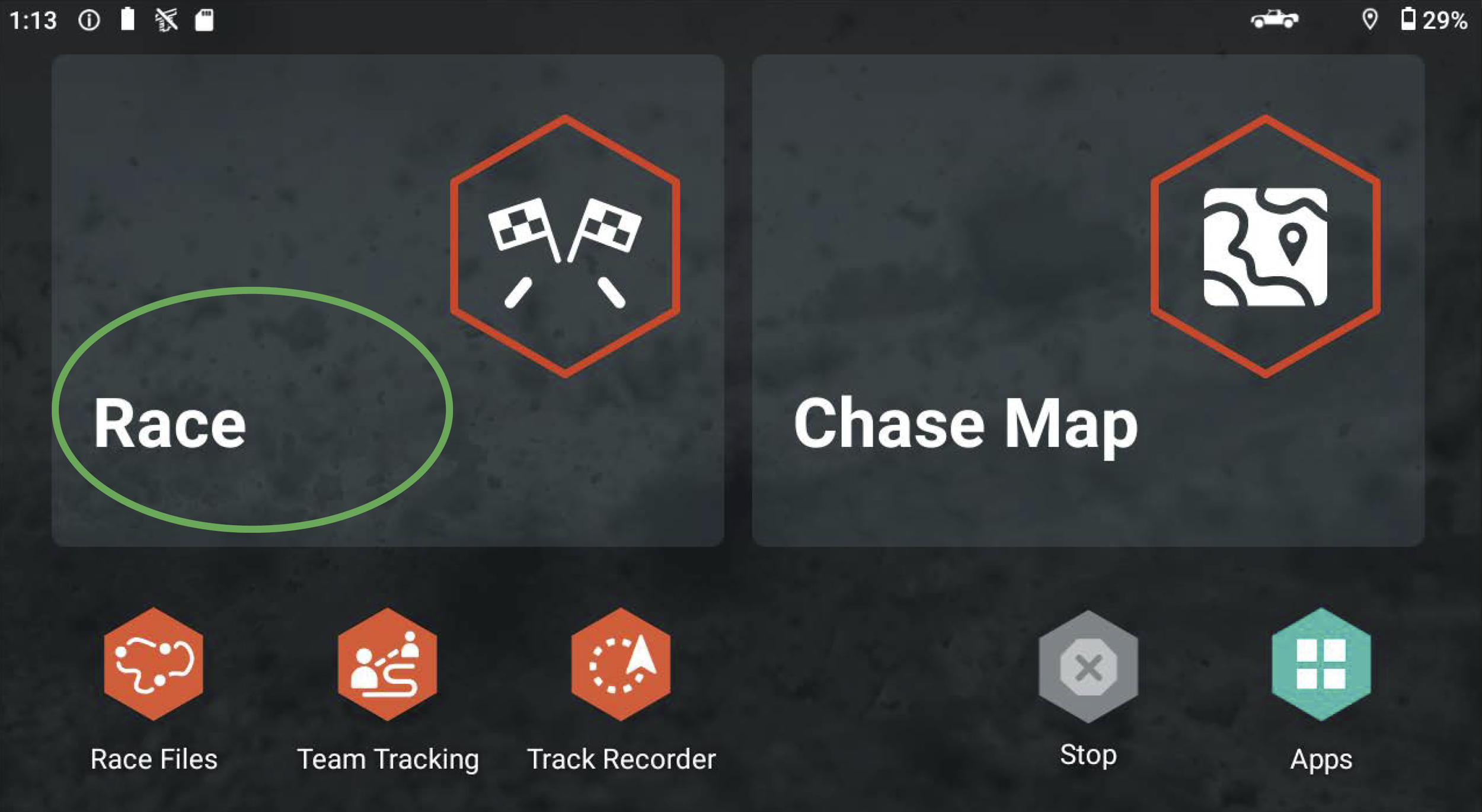 Race Mode is accessed through “Race” on the left side. It’s also accessible through the Apps page on the bottom left corner.